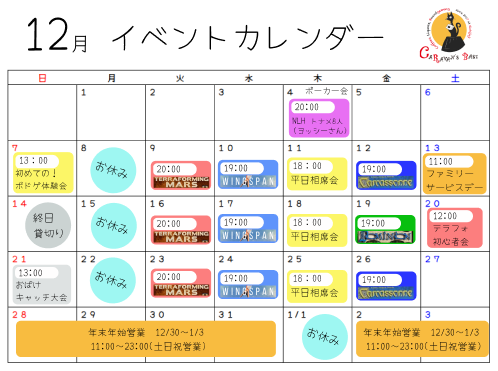 12月イベントカレンダー@国分寺